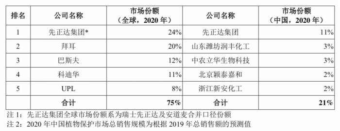 目前,就商业模式和产品范围而言,暂无与先正达集团完全可比的同类企业。
