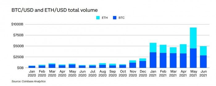 根据加密货币交易所 Coinbase 本周一公布的半年度回顾[PDF],在 2021 年上半年由于大型投资者分散投资于以太坊区块链的原生代币,以太坊市场增长速度是比特币的三倍。