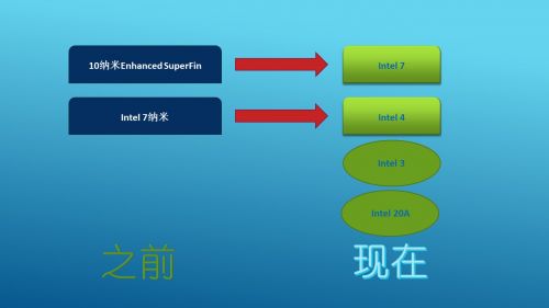 英特尔将之前的10纳米Enhanced SuperFin更名为现在的Intel 7。之前的Intel 7纳米更名为现在的Intel 4。在路线图上之后规划的工艺名称也变成了Intel 3和Intel 20A。