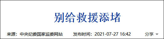 27日,中纪委网站也发文,指出灾情不是儿戏,救援更是一件严肃的工作,关乎人民群众的生命财产安全,容不得半点轻视和误导。救援通道是救援人员冒着生命危险探索出来的,非专业人士擅自驾船驶入,倘若驾驶不当遭遇障碍物,出现故障,则对他们的人身安全直接构成威胁,此时又要对其再救援,占用正常救援力量。