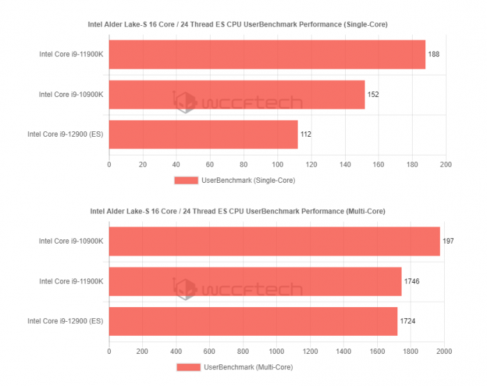Intel Alder Lake 12代酷睿越来越近了,最早10月底就会发布。尽管今年内只会有K系列高端型号、Z690旗舰主板,但是被AMD打压了这么多年,Intel能否就此绝地逆转仍然值得期待。今天,UserBenchmark数据库里出现了一颗12代酷睿的ES工程样品,自然没有型号,但看起来应该是i9-12900K或者i9-12900的早期版本。
