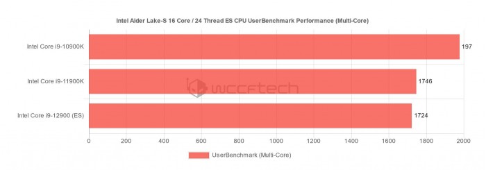 根据近期的相关报道,英特尔 Alder Lake-S 桌面 QS 样品即将推出。至于这款 ES 芯片的性能,单核成绩为 112 分,多核成绩为 1724 分。 UserBenchmark 的问题在于,它只有在比较同一制造商的性能时才有用,这就是我们将 AMD Ryzen CPU 从比较列表中排除的原因。与 AMD Ryzen 5000 系列相比,英特尔 Alder Lake 芯片将提供非常有竞争力的性能,如果像我们在这里报道的那样谣言可信的话。