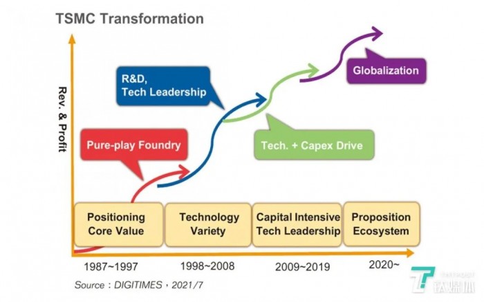 台积电发展的三个时期(图片来源:Digitimes)
