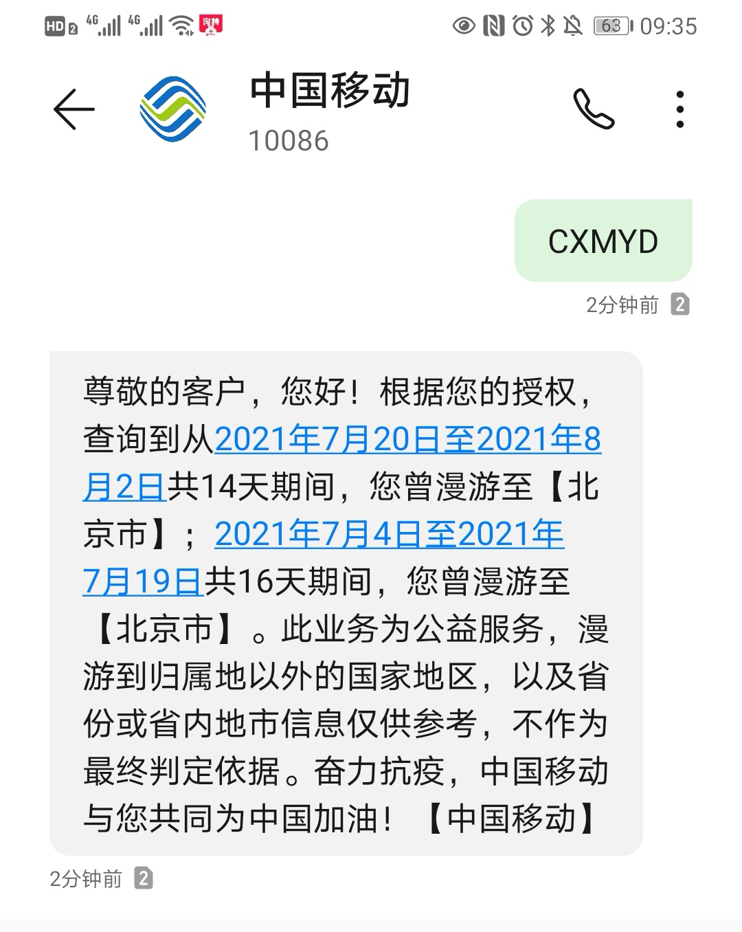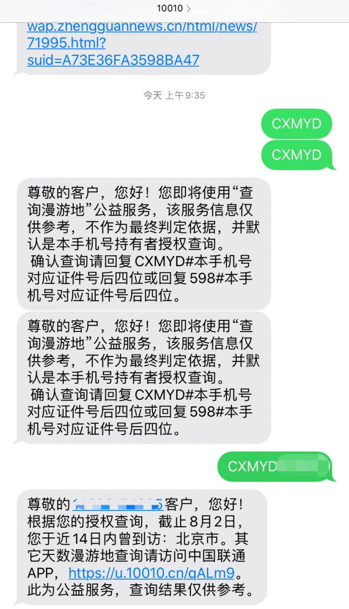 下午中国信通院官方微博发文称,基本恢复服务。信通院昨日发布公告称可以用短信查询行程。凤凰网科技刚刚分别向三家运营商发送短信,测试后发现移动、电信和联通均能收到查询反馈。但网友反映保安只承认绿码。