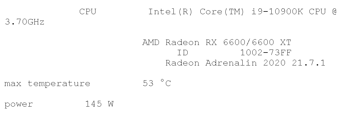 更神奇的是,检测信息显示,RX 6600 XT此时的功耗只有145W,比官方标称的160W还要低一些。