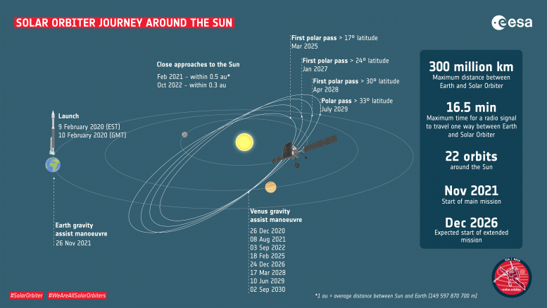 11月27日,太阳轨道飞行器将在460公里处对地球进行最后一次飞越,拉开了其主要任务的序幕。它将继续定期飞越金星,逐步增加其轨道倾角,以最好地观察太阳的未知极区,这是了解太阳11年活动周期的关键。