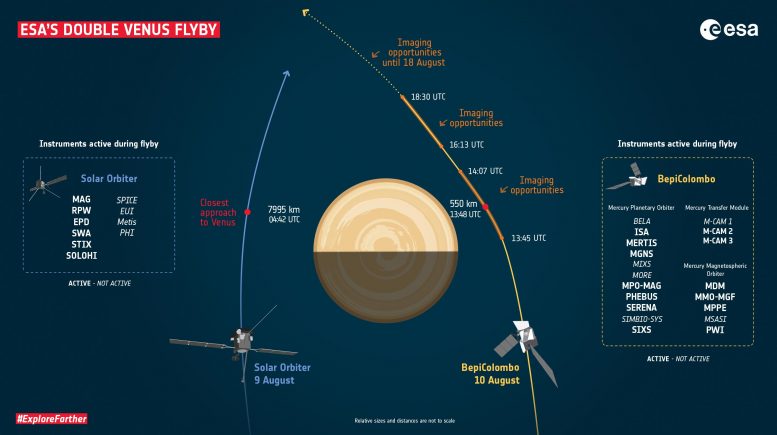 这两个航天器需要引力甩摆来帮助它们失去一点轨道能量,以便到达太阳系中心的目的地。这两次飞越也提供了一个前所未有的机会,在同一时间从不同的地点研究金星的环境,而且是在专门的行星轨道器通常不会访问的地点。