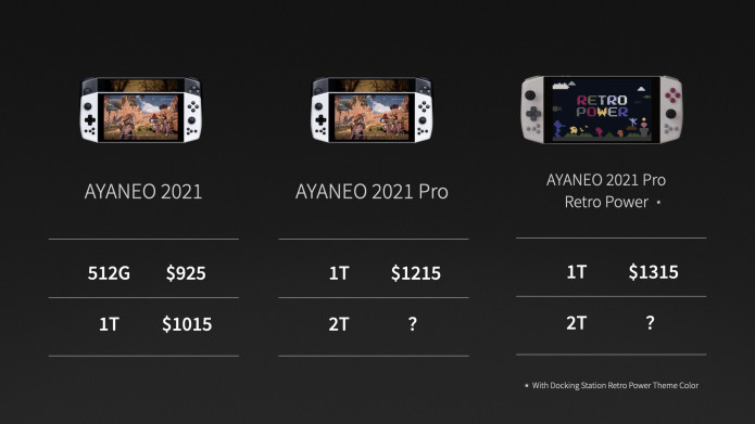 价格方面,1TB 版本的 AYA NEO Pro 和 Retro Power+ 机型分别为 1215 / 1315 美元(约 7866 / 8514 RMB),但 2TB 版本的价格尚未公布。