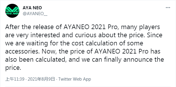 尚未发货的 AYA NEO 初代预定用户,也可按需补差价升级到新 Pro 版本。如果一切顺利的话,该公司将于 9 月开始发货。