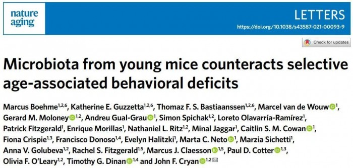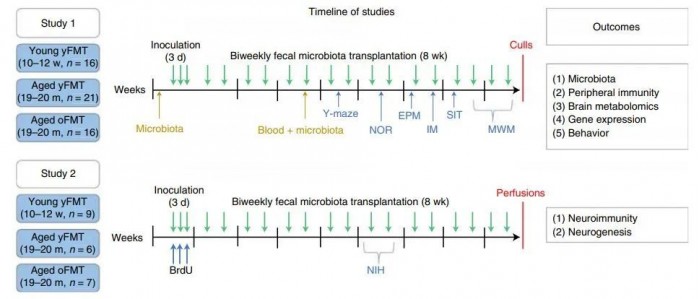 在论文中,研究人员指出,肠道菌群调节宿主的免疫功能和大脑健康,这些已经渐渐取得共识;另一方面,随着年龄增长,肠道菌群的组成通常会发生巨大变化。这种变化与老年人通常更虚弱、认知能力的衰退究竟有多大关系?如果恢复年轻时的肠道菌群,有没有可能逆转老化过程中大脑发生的某些改变?