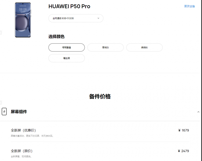 但是,出色的屏幕素质也让这块面板的造价非常好昂,根据华为最新公布的售后配件价格表显示,P50 Pro这块获得了全球第一排名的屏幕组件需要2479元,也就是说如果你不小心碎了屏幕,要花费2479元换一块新的。