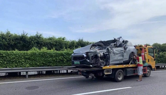 网友上传的车祸现场图片显示,这辆蔚来ES8疑似追尾了其它车辆,车辆的主驾侧A柱和车顶,被完全撕碎,车辆乘员舱被撞的稀碎,现场一片惨烈。