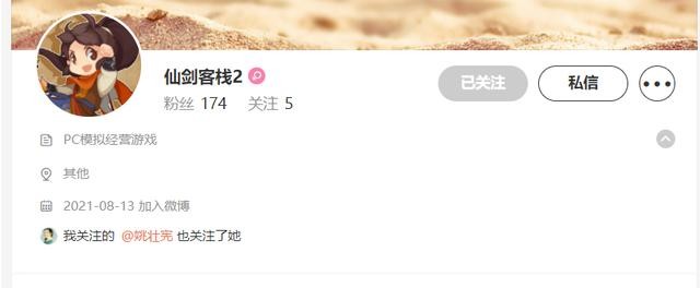 《仙剑客栈》是一款于2001年推出的模拟经营游戏,当年深受玩家喜爱。20年过去了,官方一直没推出续作。近日有网友发现,“仙剑客栈2”已在微博注册账号。该账号于2021年8月13日注册,简介写的是“PC模拟经营游戏”。