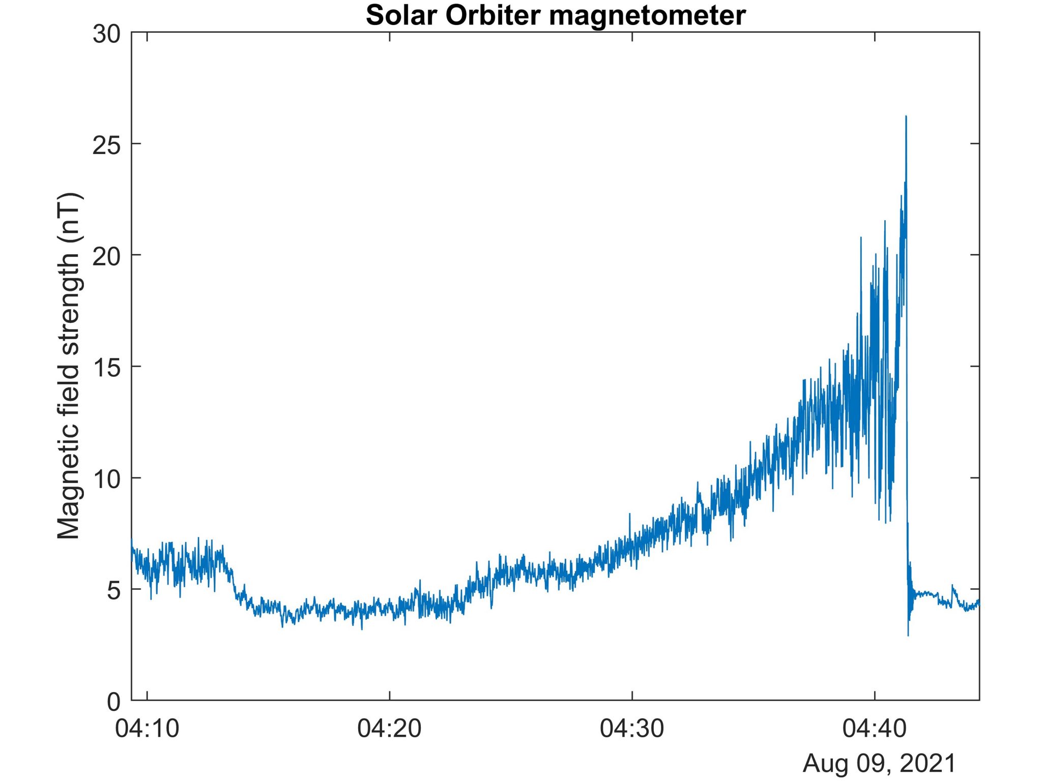 太阳轨道器磁力计团队还描述了当它们经过行星的侧翼时,由于磁场的压缩磁场的大小在增加,然后当它们穿过弓形激波再次进入太阳风时磁场急剧下降。