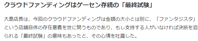 ·据媒体采访,支援者并非全是当地的常客玩家,实际上来自日本全国各地,而且总计 184 名支援者的支援金额平均都在万元之上,大岛店长也表示,这次的众筹想法实际上是抱着让街机厅活下去的“最终试验”。