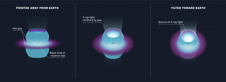 大多数时候,SS 433的两个锥体都指向远离地球的地方。但是由于SS 433的前进方式,其中一个圆锥体定期向地球略微倾斜,因此科学家可以看到从圆锥体顶部发出的一点点X射线。在新研究中,科学家们研究了NuSTAR看到的X射线如何随着SS 433的移动而变化。他们表明,如果该锥体继续向地球倾斜,以便科学家们能够直接俯视它,他们将看到足够的X射线,从而正式将SS 433称为ULX。