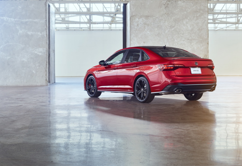 而速腾GLI车型的外观更激进,前脸中网为熏黑网状,轮圈、窗框等位置也使用了熏黑色,冲击力更强。