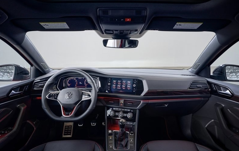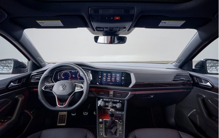 内饰依旧是经典的大众车布局,中控部分微微向驾驶员一侧倾斜,同时配备了配备了一款液晶仪表,能够大幅提升车内的科技感。