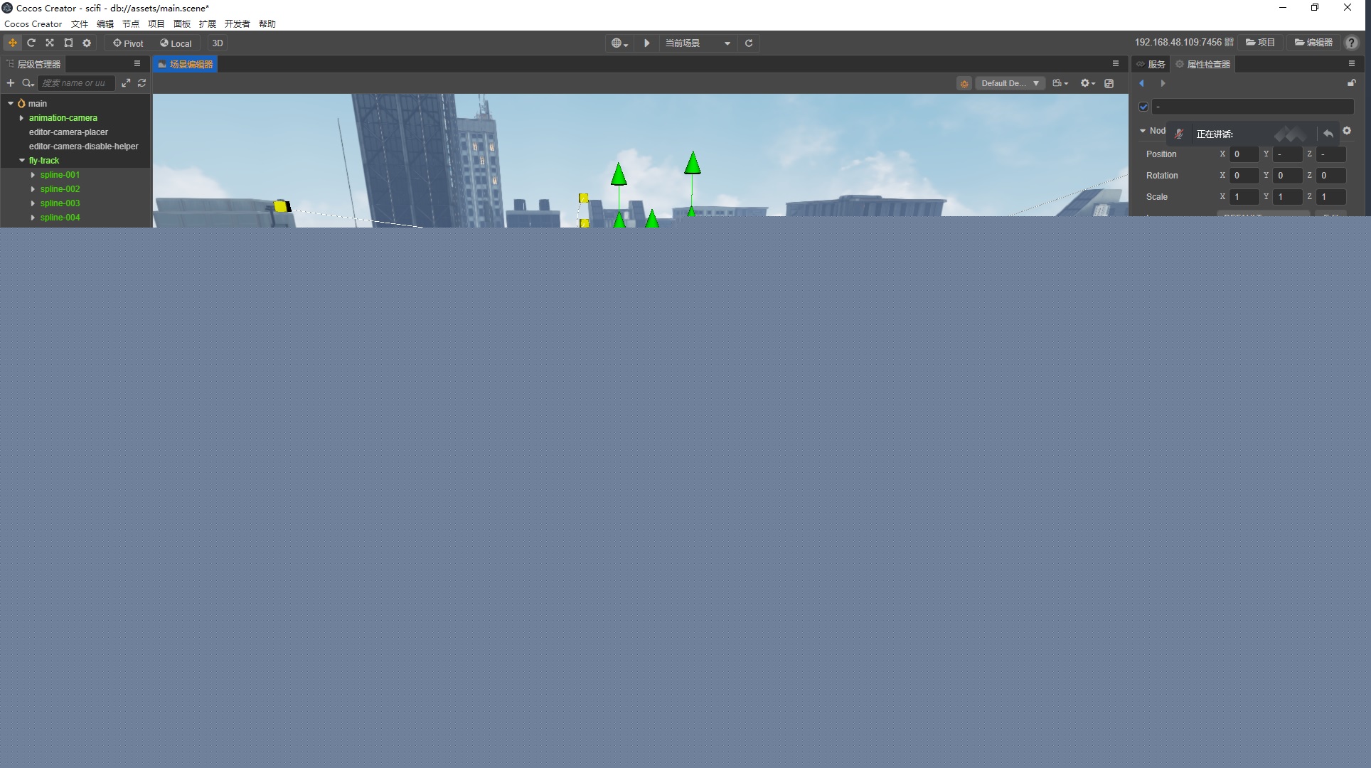 “这里主要使用了我之前写的一个 spline tool 的插件,这个插件可以让开发者在编辑器中自由创建编辑样条曲线,通过生成的曲线你可以自定义出许多实用的功能 。”youyou 表示 ,Demo 正是使用了生成的曲线作为飞行器飞行的轨道。只要预先在编辑器里面编辑多条符合飞行规律的轨道,运行时定时生成飞行器并随机选择一条轨道放上去即可。