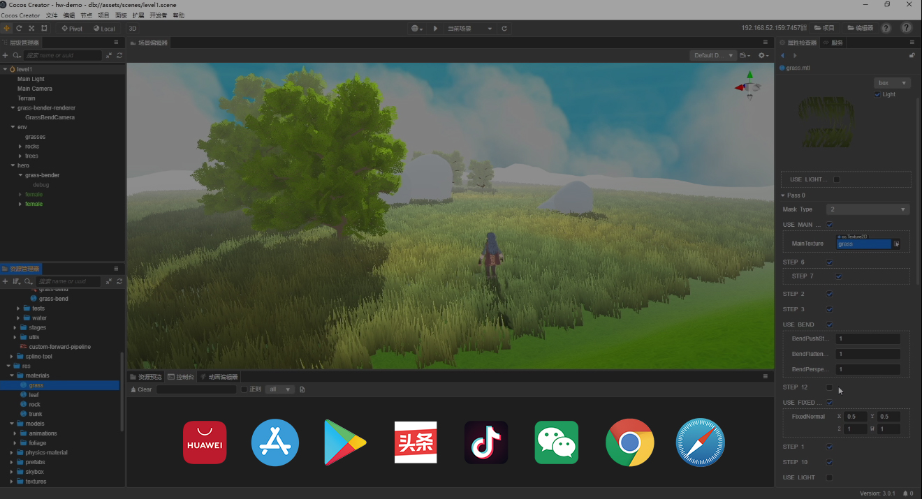 同时, Cocos Creator V3.3 提升了原生引擎的绑定层级,在渲染管线之上的渲染场景部分完成了原生化,进一步优化原生平台的性能,也使得 Web 和小游戏平台的性能得到肉眼可见的提升。