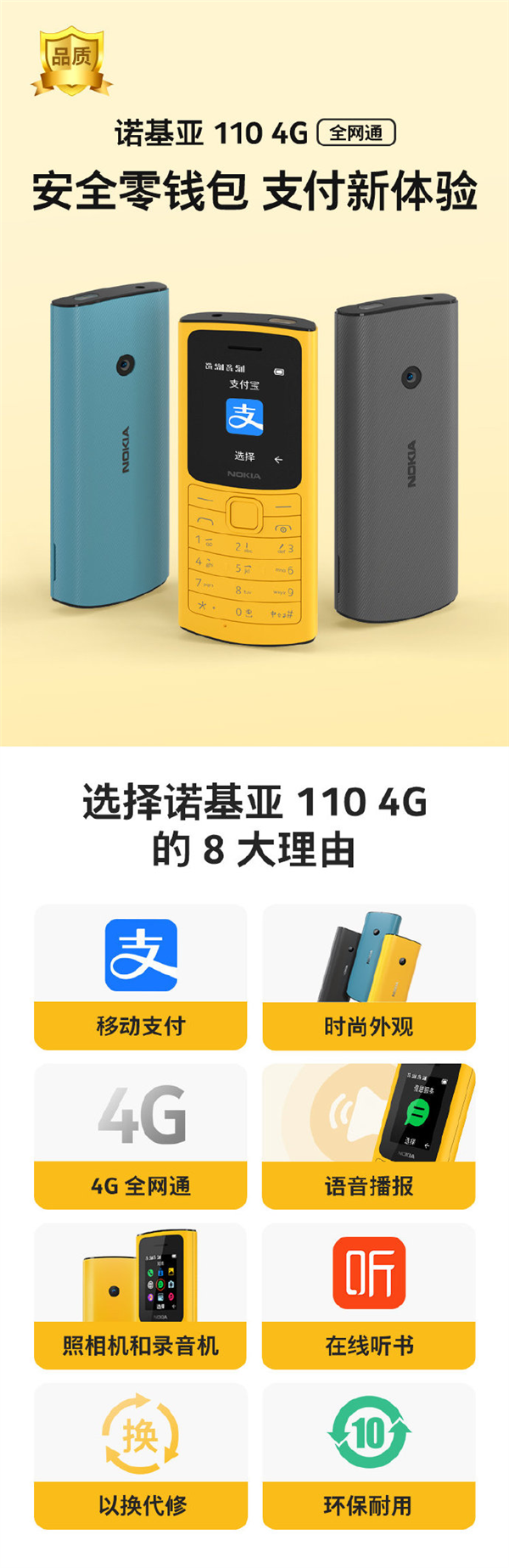 8 月 27 日消息,今日,诺基亚手机官方宣布,诺基亚 110 4G 新品正式上市,支持支付宝付款、喜马拉雅在线电台和语音播报,售价 269 元,首发到手价 249 元。