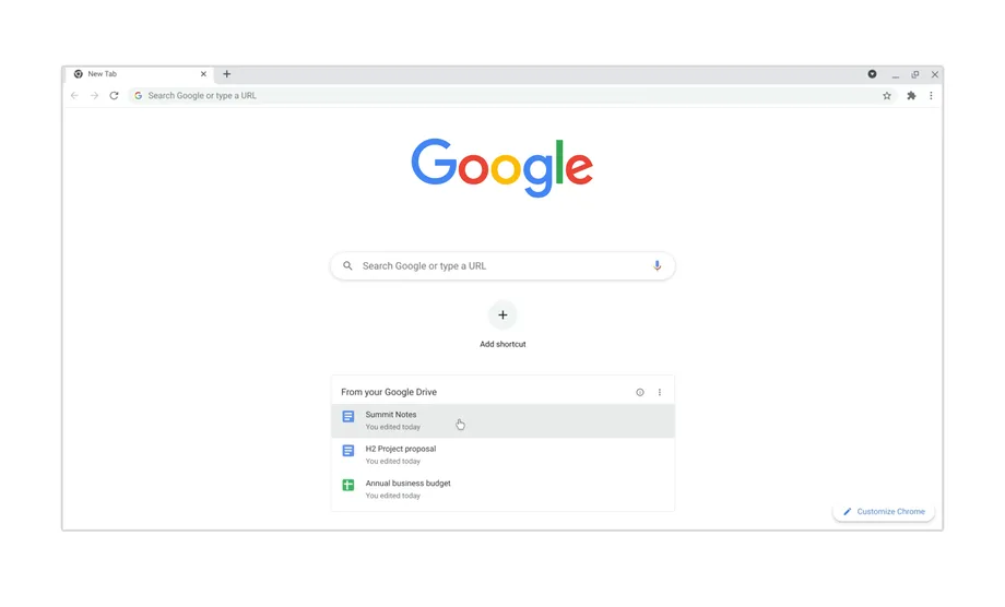 第三个新功能是在新标签页上添加卡片,使其更容易跳回以前访问过的网站。在一篇博客文章中,Google给出了食谱页面、购物车或Google硬盘上的文档的卡片案例。如果你想试试这个,请在PC版本上启用#ntp-modules标记。