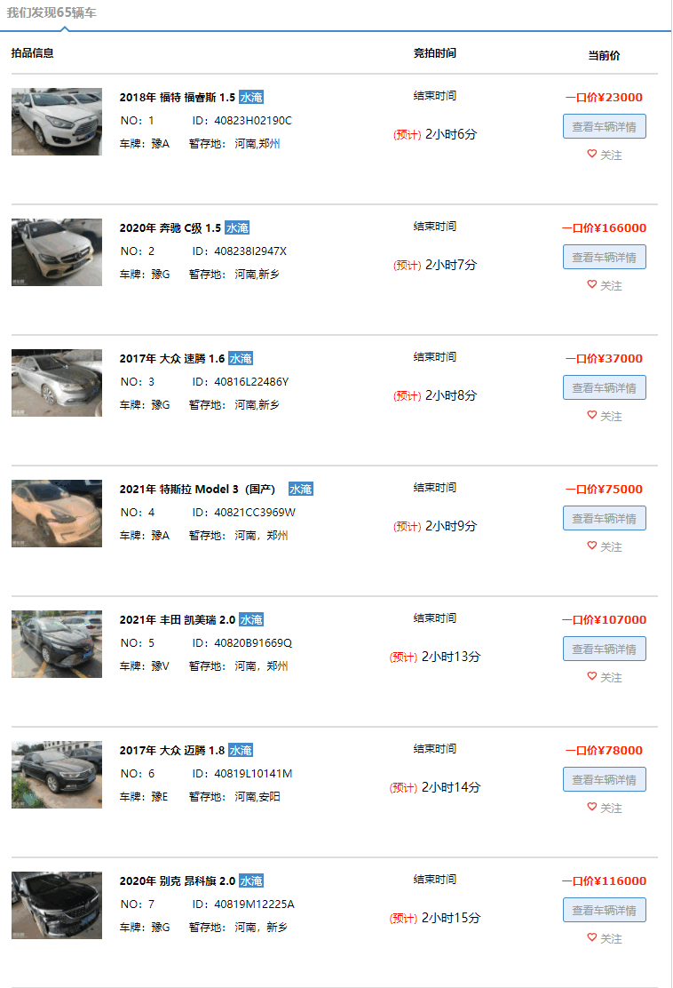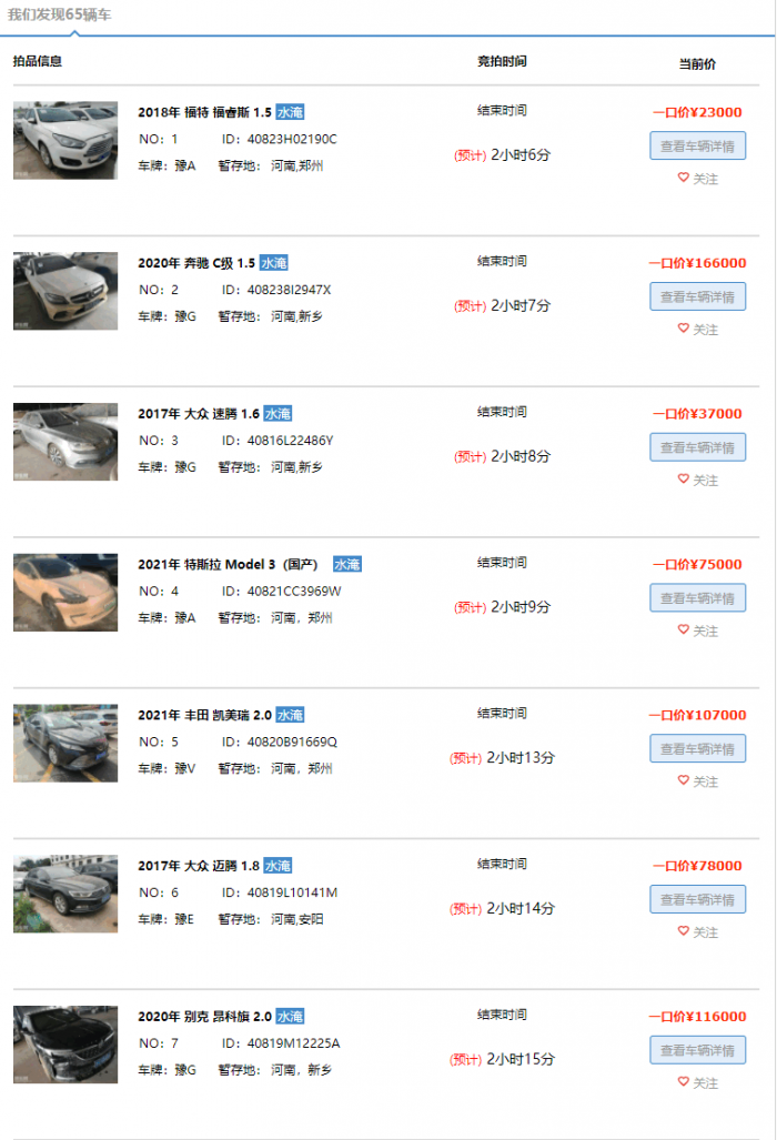 在博车网的河南水淹车拍卖专场,我们可以看到不少车辆经过定损之后,往往会给出一口价,并且一些全新车型的水泡价,对比新车非常具有诱惑力。