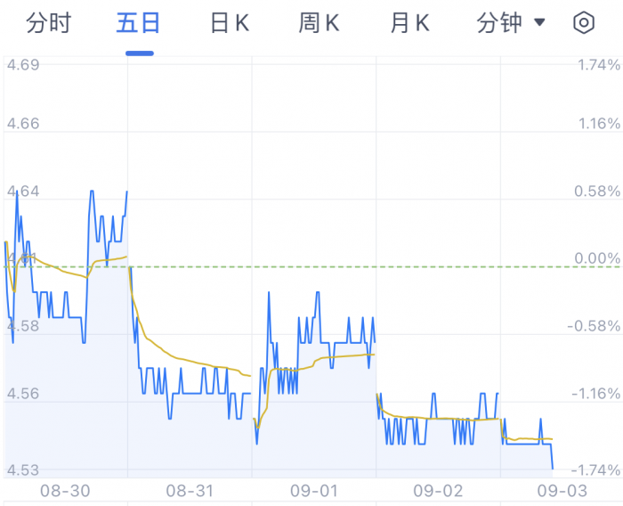 截至中午收盘,股价报4.54元,成交385.3万手,成交额17.50亿元,换手率6.66%,最新市值4146亿元。