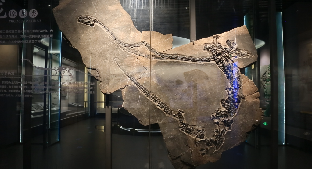 在贵州省地质博物馆,“镇馆之宝”梁氏关岭鱼龙9.3米的身长,昭示着它曾经在海洋里的霸主地位。而在贵州盘县生物群发现的东方恐头龙,脖子有1米多长,是躯干的两倍。