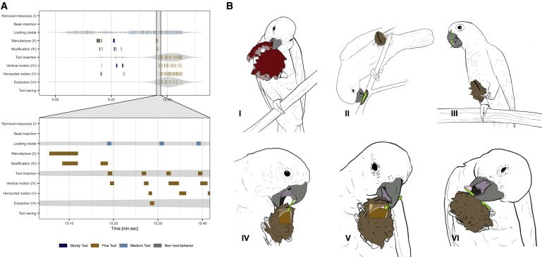 但该团队说,这种对不同工具的连续使用对鸟类来说是出乎意料的复杂。这种行为以前只在人类、黑猩猩和卷尾猴中观察到过。