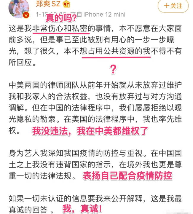 图源:郑爽微博 注解:萝严肃