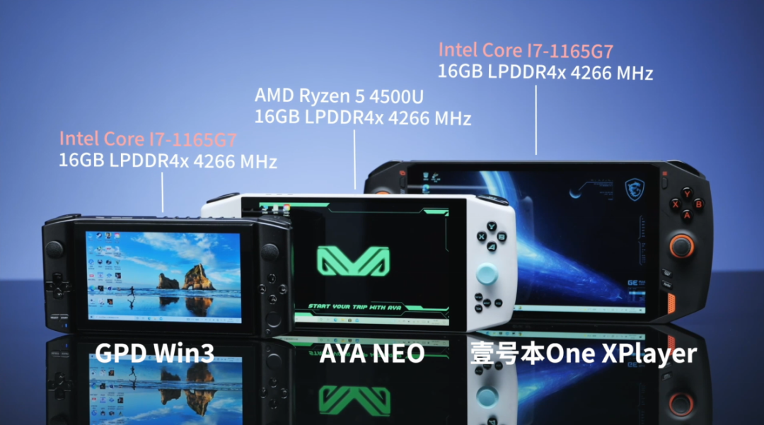 今天我们要给大家评测的,是这三款PC掌机,AYA NEO正式版、GPD Win3以及壹号本One XPlayer。在办公室玩儿了这么多天游戏,本期视频就让我们来看看,这三款掌机的表现如何。需要说明的是,在我们制作视频时,AYA已经宣布推出了新版本AYA NEO 2021,相比现在的版本会有一定程度进化,希望大家不要混淆。