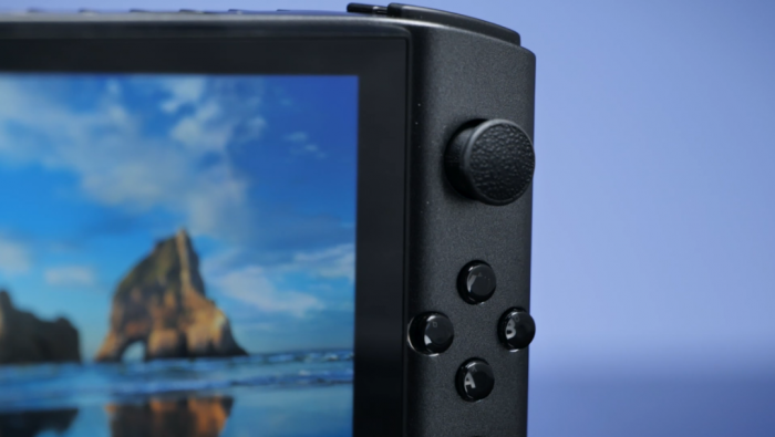 与同行都不一样的是,GPD的手柄采用了左右对称的设计,右侧摇杆被放在了按键上方,人为的制造操作困难,不太理解它的设计师是怎么想的。