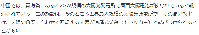 ·目前世界太阳能发电规模最大的例子当属我国青海省的2.2GW超大规模太阳能发电场,据悉也将使用双面太阳能板,不过气并非真正意义上的双面太阳能板,而本次澳洲国立大学(ANU)的真正双面太阳能板发电效率更高以及前期基础设施成本更低。