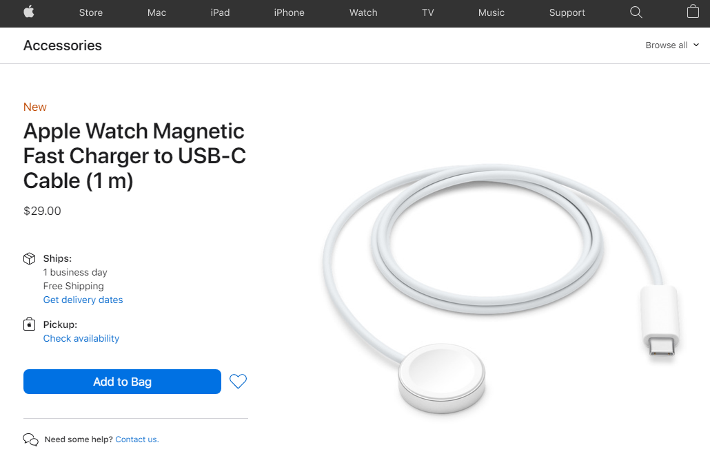 新款 USB-C 磁力快充适配器(1 米版)也兼容旧款 Apple Watch 智能手表
