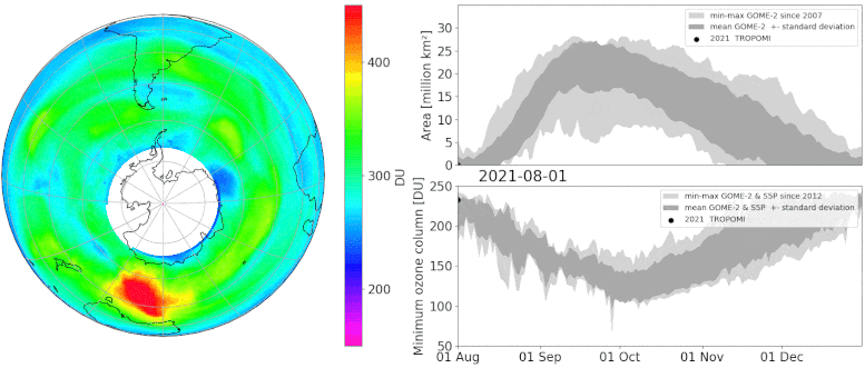 《蒙特利尔议定书》显示了保护环境的国际承诺的力量。卫星数据是监测全球范围内臭氧层变化的良好手段。哥白尼哨兵-5P(Copernicus Sentinel-5P)卫星的臭氧测量扩展了始于1995年的全球臭氧监测实验(GOME)的欧洲时间序列。