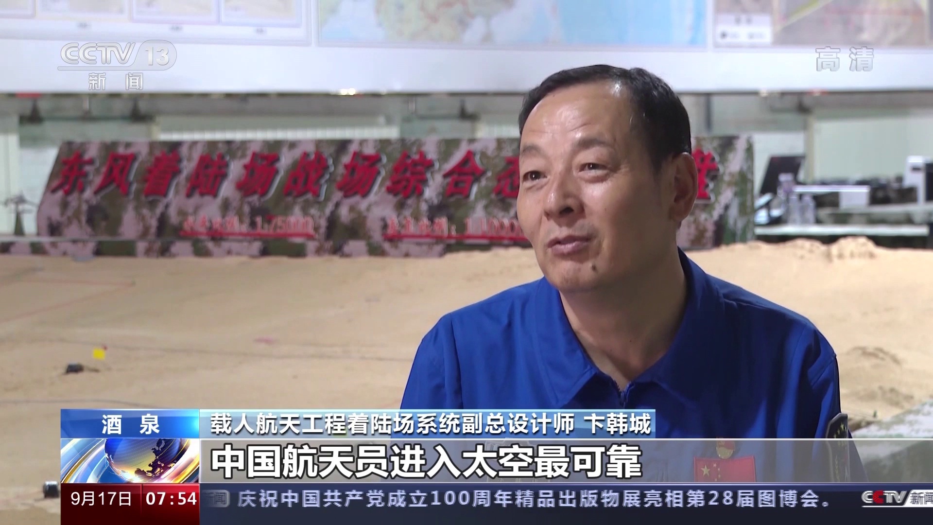 载人航天工程着陆场系统副总设计师 卞韩城:我们提出了一个跟踪测量、 立体连续、落点预报、快速准确、搜索救援、舱落人到的搜索回收任务预定目标。中国的载人飞船从中国酒泉卫星发射中心发射升空,最后又回到中国酒泉卫星发射中心,这是我们的光荣,所以我们要建设中国航天员进入太空最可靠、最安全、最温暖的航天港。