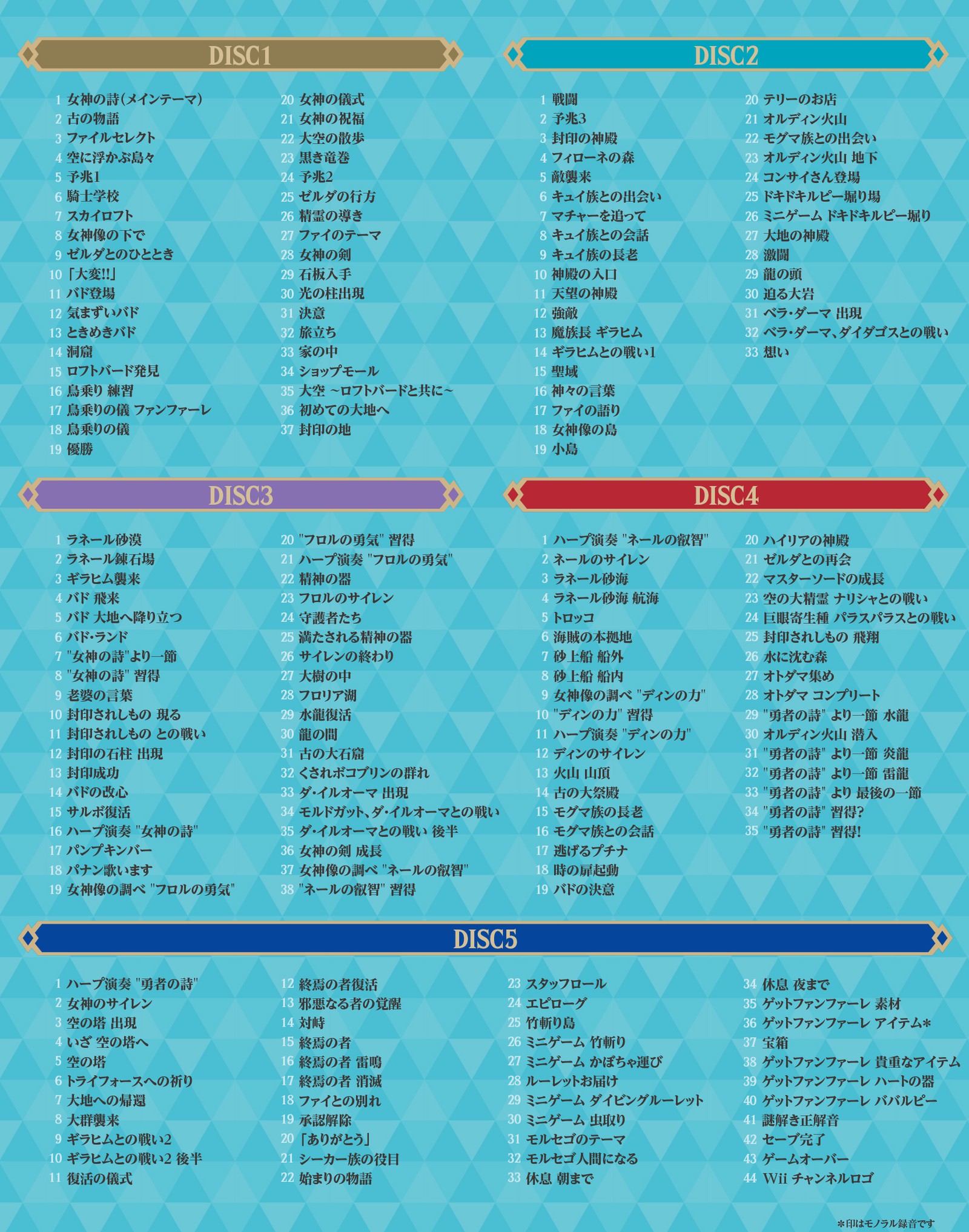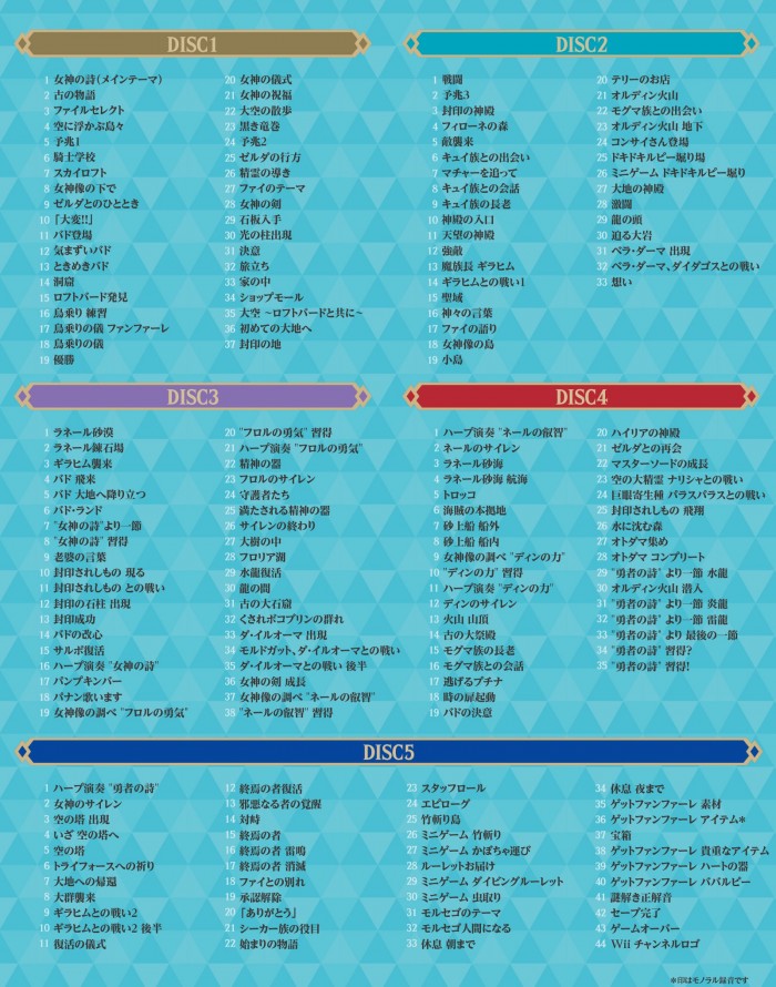 根据官方的介绍 ,5 张 CD 共收录了 187 首音乐,以下是详细音乐收录表: