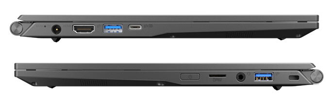 U4配备14英寸IPS防眩光显示屏,1920x1080分辨率,U4配备背光键盘,技嘉增加了一个更宽的触摸板,但没有详细说明其尺寸。超薄领域的大多数笔记本往往缺乏连接选项,但这里唯一真正缺乏的是以太网端口,因为技嘉包括了一个带有USB4、DisplayPort和35W USB-PD充电支持的雷电4端口,以及一个USB 3.2 Gen 2和一个USB 3.2 Gen 1 Type-A端口,一个HDMI 2.0端口,一个3.5毫米组合音频/麦克风插孔,一个microSD卡槽和DC插孔。还有一个英特尔AX201 Wi-Fi 6/蓝牙5.2无线网卡,以及一个高清网络摄像头。U4配备一对扬声器和一个具有降噪功能的双阵列麦克风,预装Windows 10家庭版或专业版。