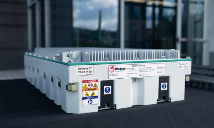 世界上第一辆电池电动货运列车周五在匹兹堡的一次活动中亮相。目前美国立法者正试图削减铁路运输的碳排放,以应对气候危机。位于匹兹堡的铁路货运公司Wabtec在卡内基梅隆大学展示了它的火车头,这是两个组织之间的一项新举措,旨在开发零排放技术,帮助电动货运列车每年在美国铁路上运输17亿吨货物。