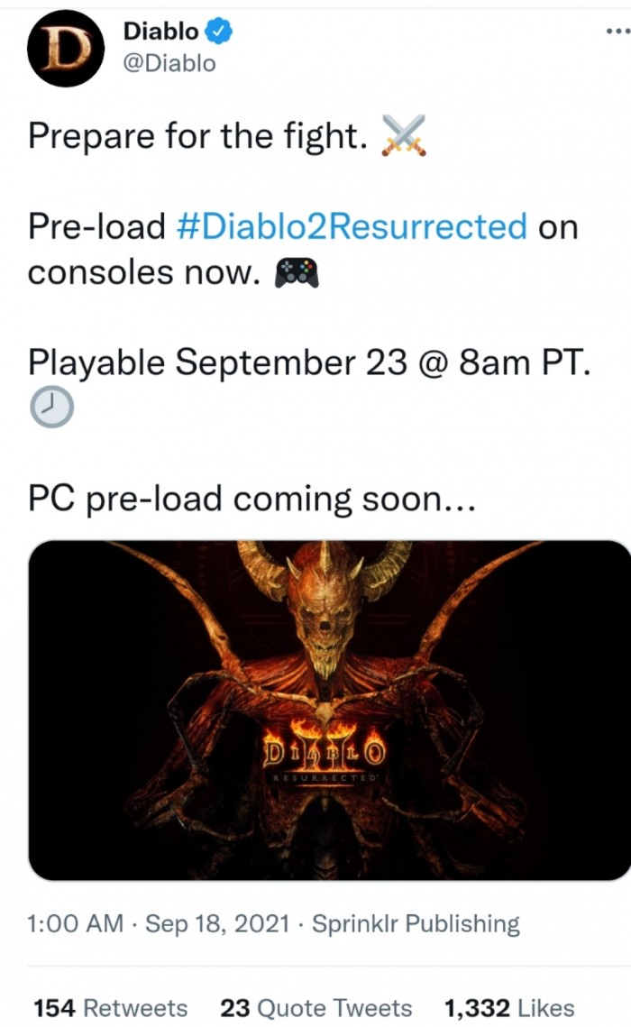 9月18日消息,今日,《暗黑破坏神》官方宣布,《暗黑破坏神2:重制版》主机端的预载正式开始,而PC端预载将于不久之后开放,本作将于本月正式发售。据了解,目前《暗黑破坏神2:重制版》已开启PC与主机端的预售,本作将登陆PC、PS4、PS5、Switch 、Xbox X|S平台。