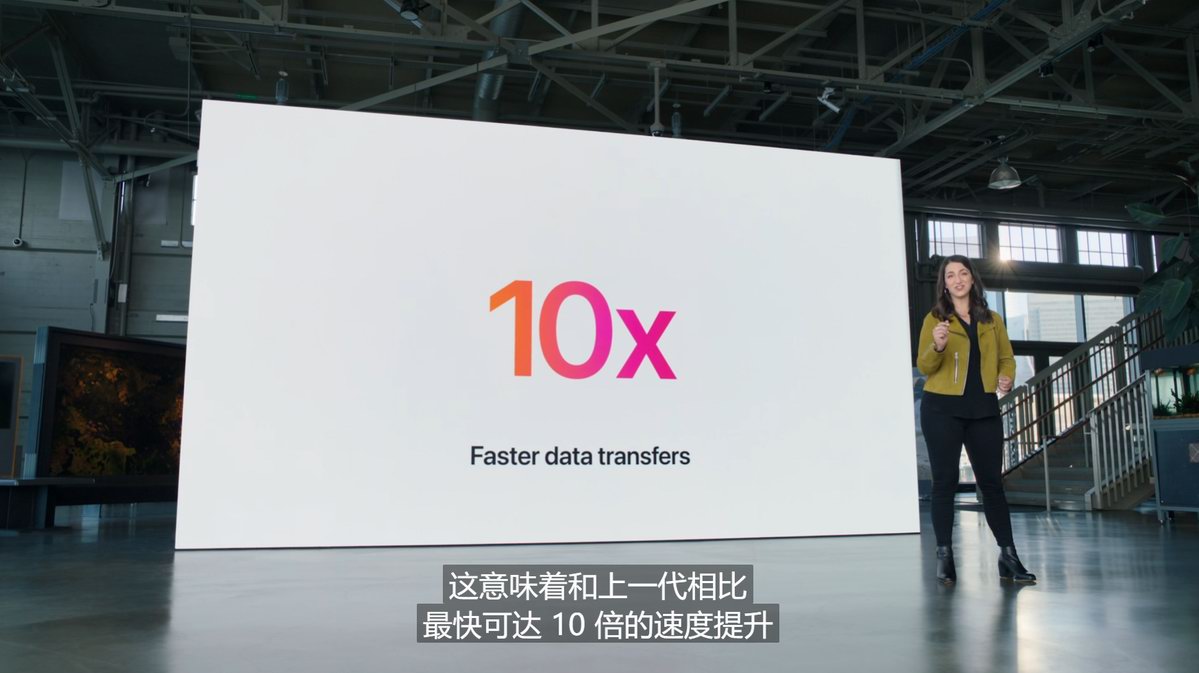 入门机型继续使用Lightning接口,赚取封闭生态的芯片费用,这群用户基本没什么需求,爱奇艺走起就是了。高性能机型采用USB-C接口,支持5Gbps数据速率,购买这个级别平板的用户,除了爱奇艺外也会有自己的“玩法”,基于USB-C通用性,5Gbps速率可以满足他们的需求。旗舰机型虽然也采用USB-C物理接口,但采用了雷电/USB4数据传输标准,超高速率可达40Gbps,同时还兼容通用的USB 3.1 Gen2 10Gbps数据标准。