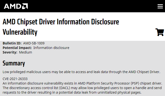 在安全研究人员兼 ZeroPeril 联合创始人 Kyriakos Economou 发现该漏洞并联系 AMD 后,CVE-2021-26333 安全漏洞的细节现已全面披露。