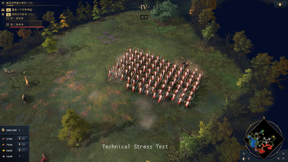 还有其他文明的例子,比如同样在这次压力测试中可选的黑衣大食,也就是阿拉伯的阿巴斯王朝。因为文明特性,这个派系的玩家无法狩猎地图上的野猪,但作为补偿,黑衣大食的村民在采集浆果丛时,会有25%的速度加成。同样的,阿拉伯文明的时代核心也有所不同,使用这个派系的玩家要把建筑围绕在“智慧宫”周围,从而获取“黄金时代”的文明增益。