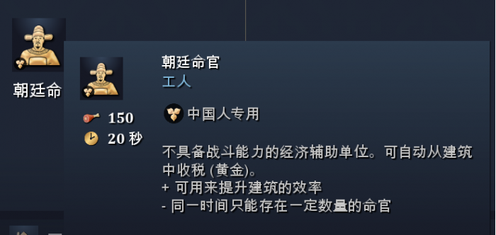 命官不只是收税的税吏,他还能通过监督技能,提高指定建筑的生产和研究速率,效果非常可观,整整提高200%,堪称人形时空加速器。也就是说,派朝廷命官督察一个兵营,就能转化出三个兵营的暴兵效率。而玩家最多能拥有4个朝廷命官,使用得当的话,理论上是非常恐怖的。