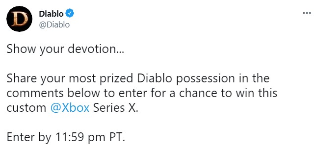 目前为止,玩家们已经列出了诸如《暗黑破坏神》游戏内成就、啤酒杯和其他物品之类的东西。需要注意的是,抽奖将于太平洋时间今晚9月22日11点59分截止(北京时间9月23日下午2点59分)。