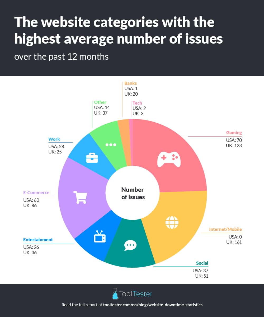根据该统计报告称,游戏行业是所有网络服务中断线最多的,但是网络行业在过去十二个月以来整体上都遇到了服务器下线的问题。