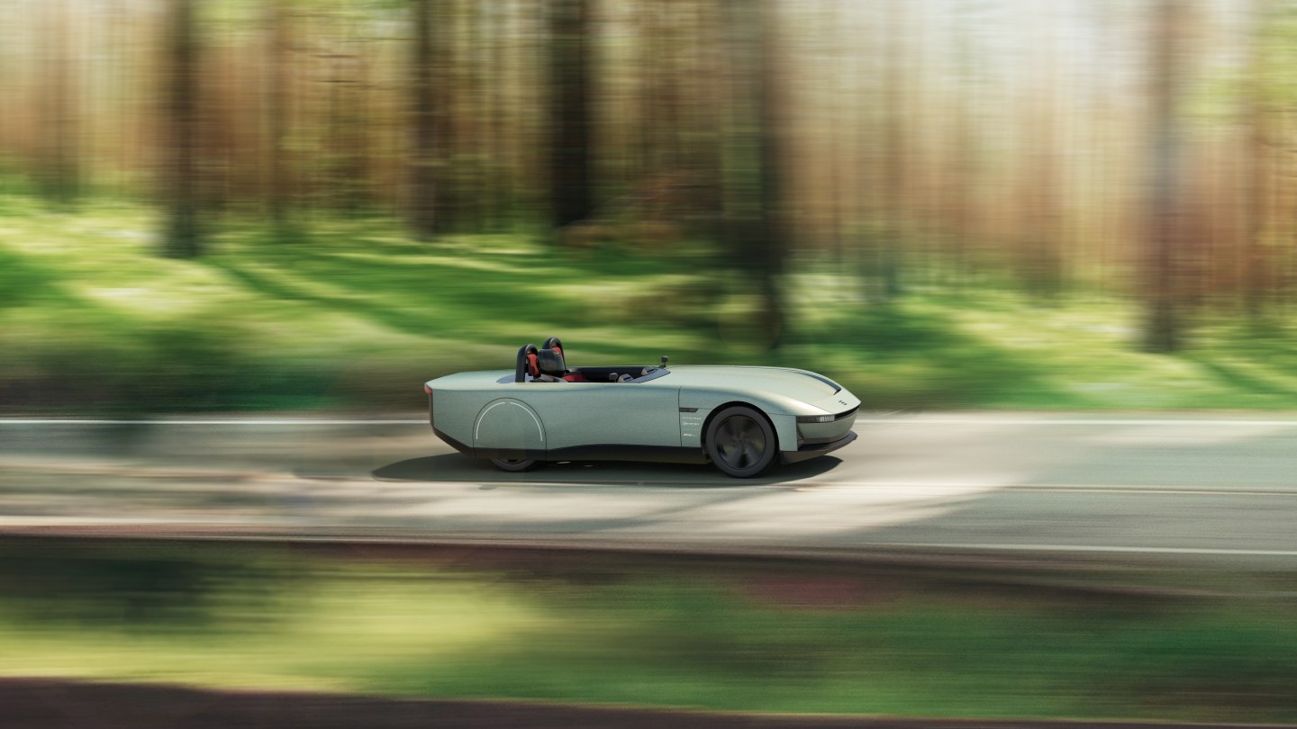 据外媒报道,这是一款没有品牌的概念车,据悉,这款全新的Aura电动跑由四家英国公司打造。它给人的感觉有点像现代的MG Midget或Triumph Spitfire,在我们这个生态至上的时代,它有着一个空气造型、无车顶和无窗户的生物复合材料外壳,全电动动力系统和效率优化的人机界面,这些使它成为了一个户外美景。
