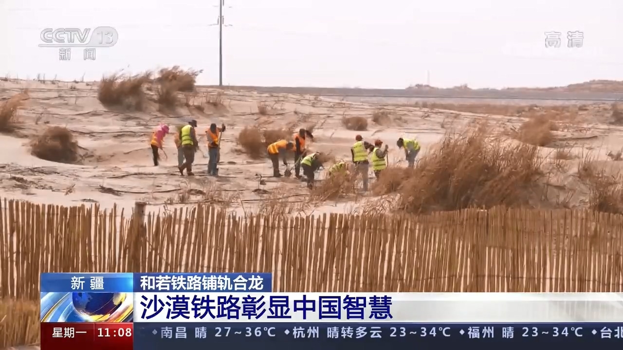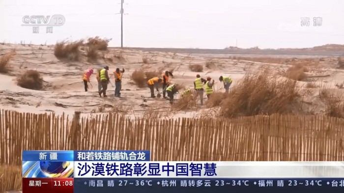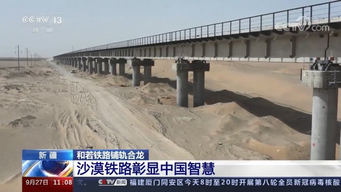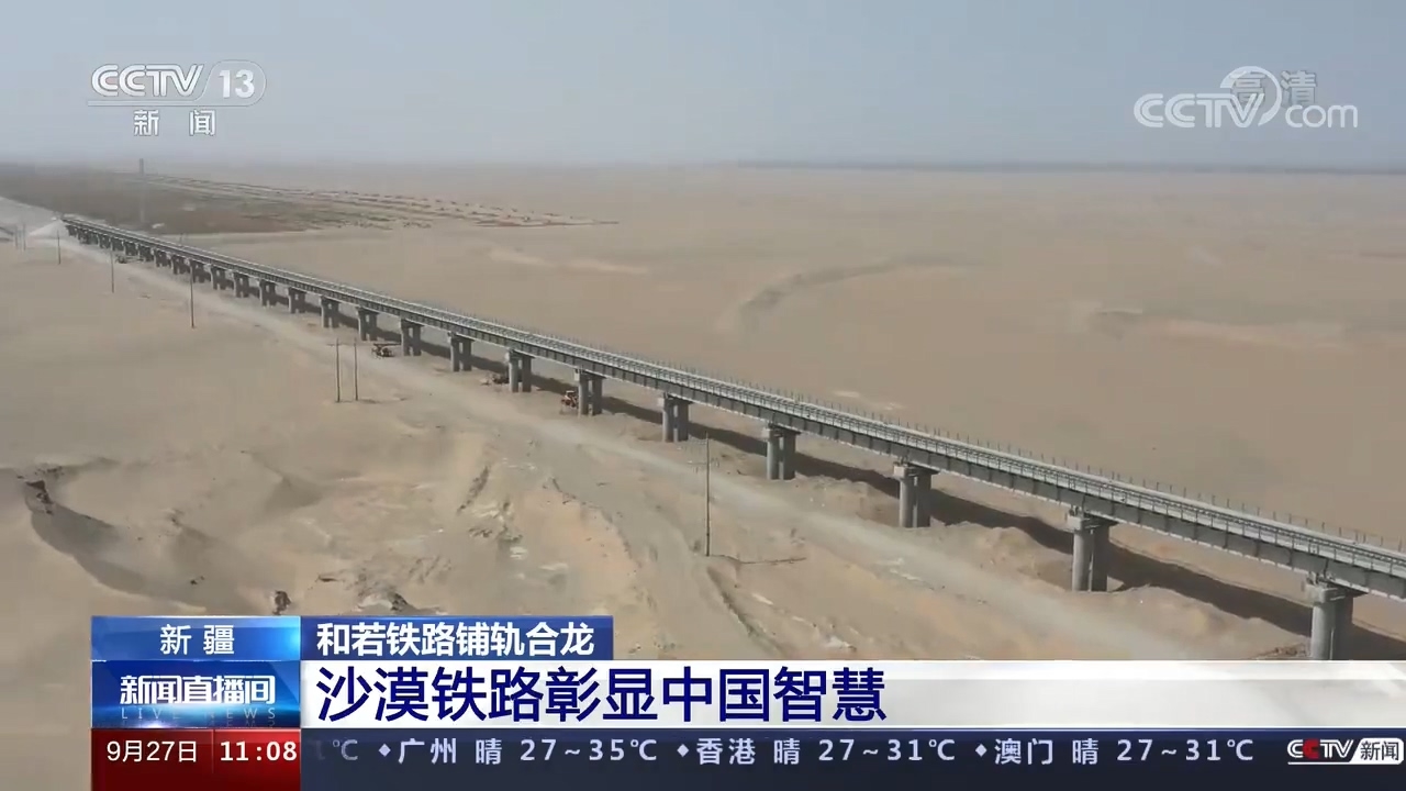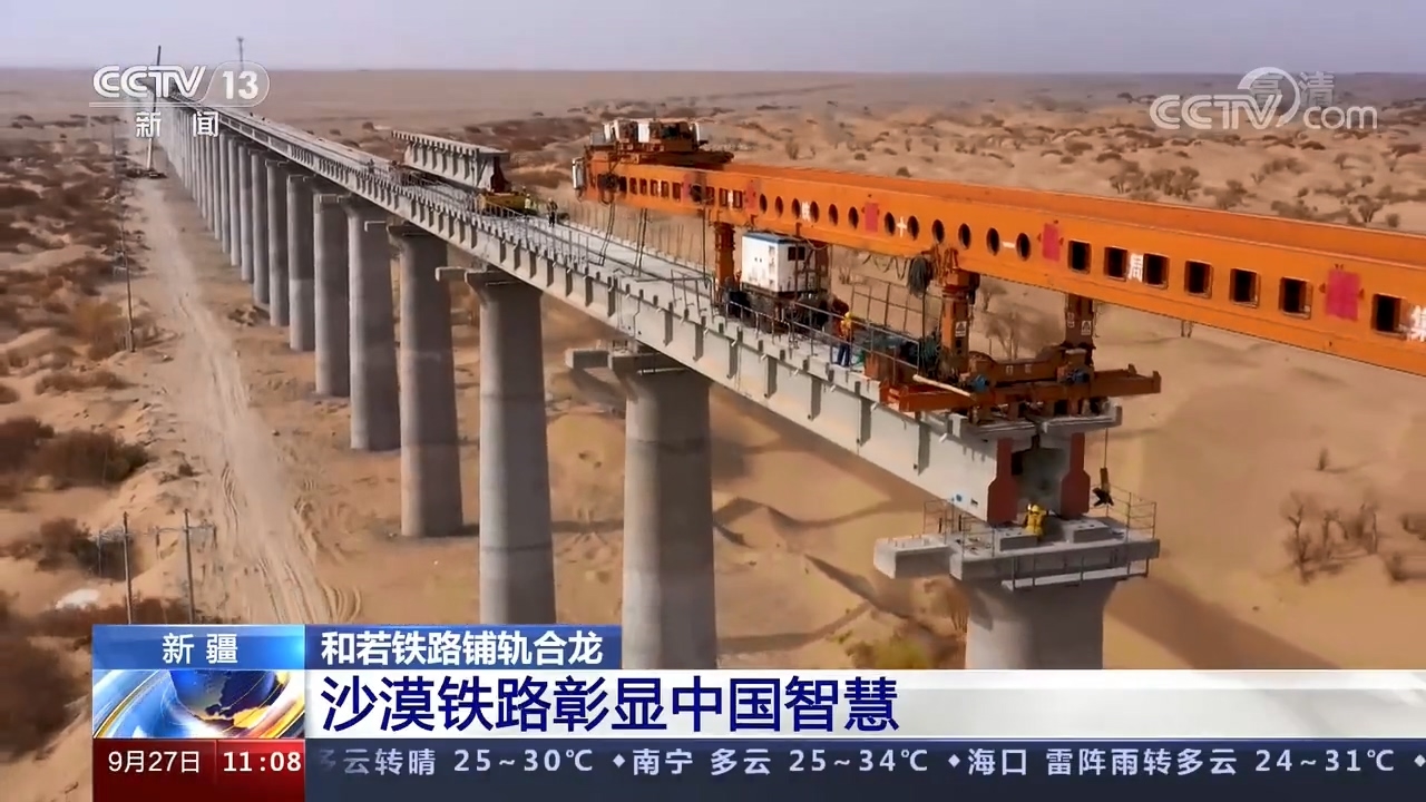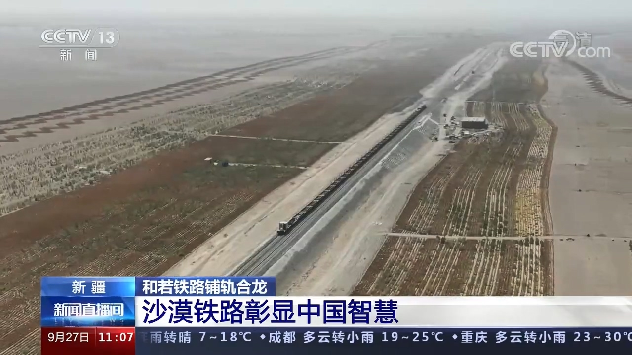 9月27日上午11时许,在新疆和田地区民丰县的和若铁路(和田至若羌)建设工地,最后一组500米长钢轨稳稳落下,标志着环塔克拉玛干沙漠铁路线正式“闭环”!和若铁路连接新疆维吾尔自治区南部的和田地区与巴音郭楞蒙古自治州若羌县,是国家重点铁路工程,《中长期铁路网规划》里西部地区重要区域路网干线,南疆地区沟通西北、西南地区的便捷运输通道。