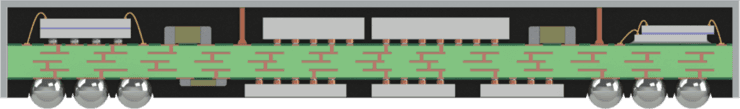在 DSMBGA 中,组件基于基板的顶部和底部,减小了封装尺寸,并且缩短了器件的信号路径 ,可以调整组件以启用 SiP 。DSMBGA 存在于智能手机和其他产品中,在智能手机中包括用于处理发送或接受信号的数字模块和 RF 前端模块部分。